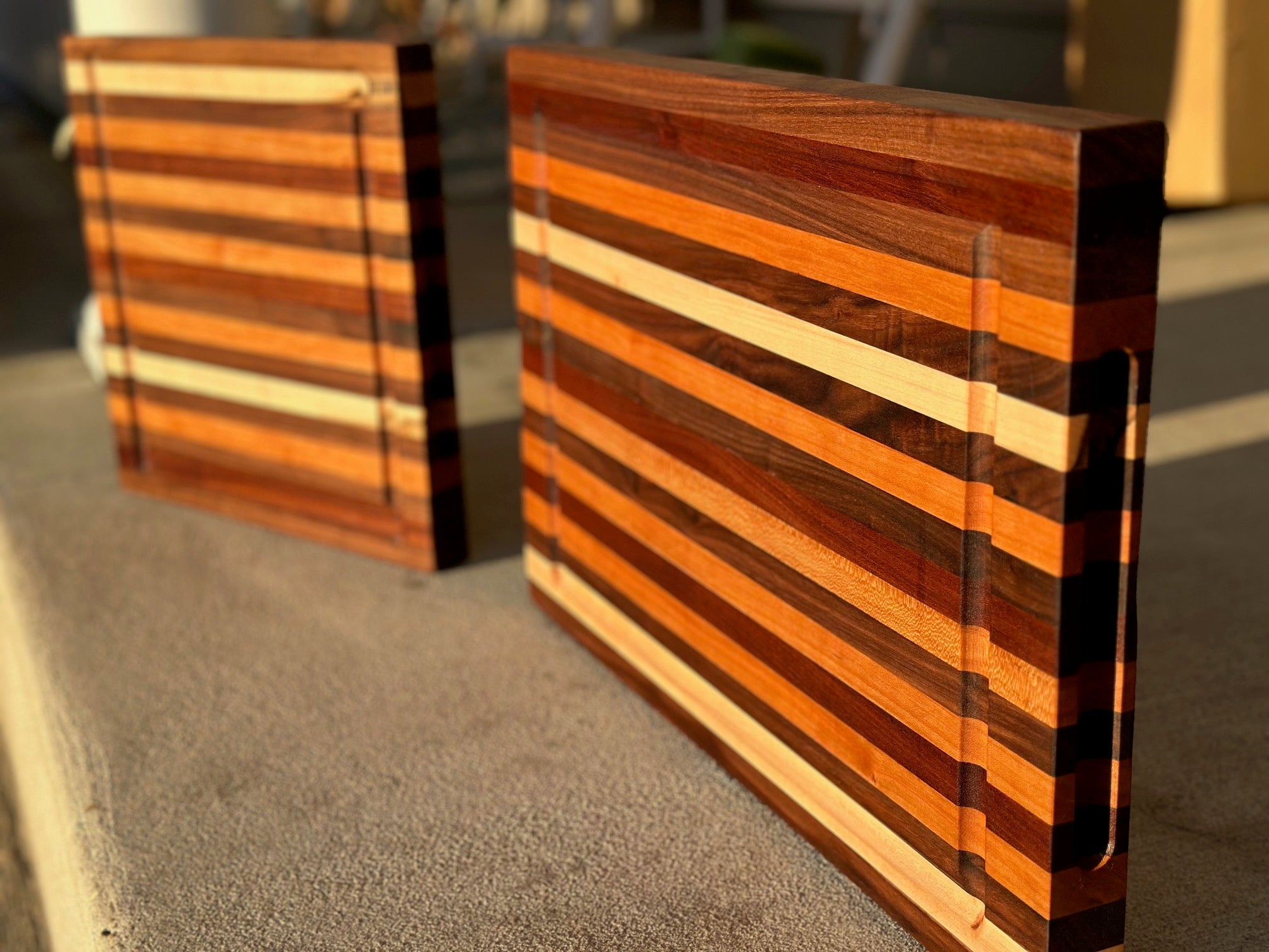 The cutting board I purchased is absolutely amazing. The thickness and different color of wood used to make my cutting board is what I love about it most. I will be definitely buying more and giving them away as gifts for family and friends.